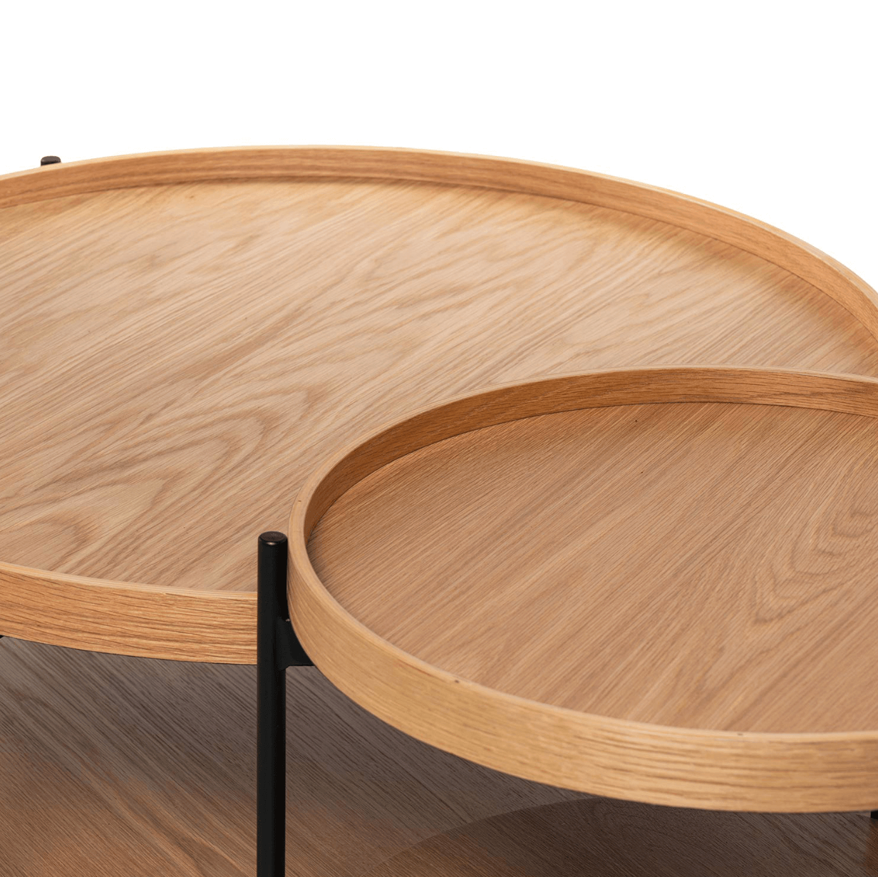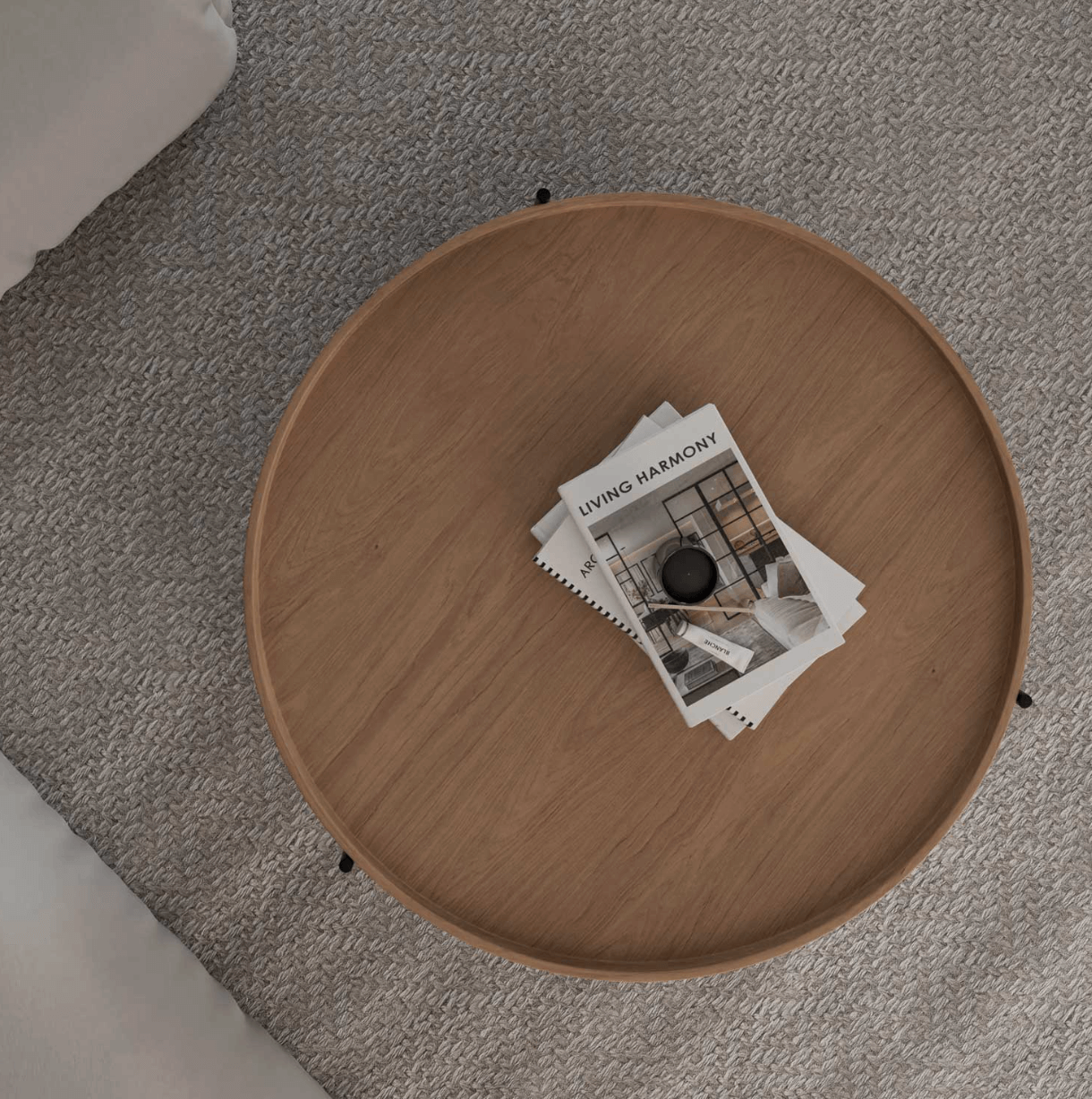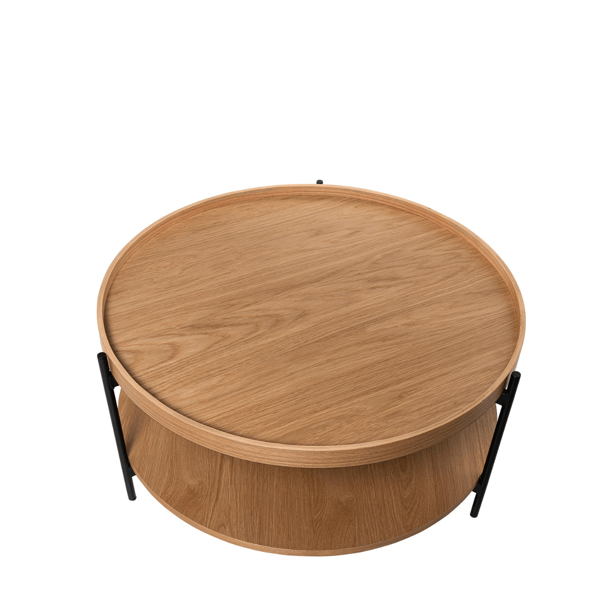 La mesa de centro DYLAN se distingue por su diseño contemporáneo en un elegante color madera con su tapa de chapa de roble, que aporta un toque natural y elegante.