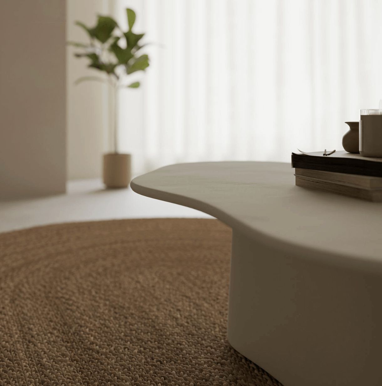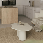 Sus bordes redondeados aportan sensación de amplitud y luminosidad, convirtiendo la mesa MUKUL en una pieza de interiores que equilibra funcionalidad y estilo.